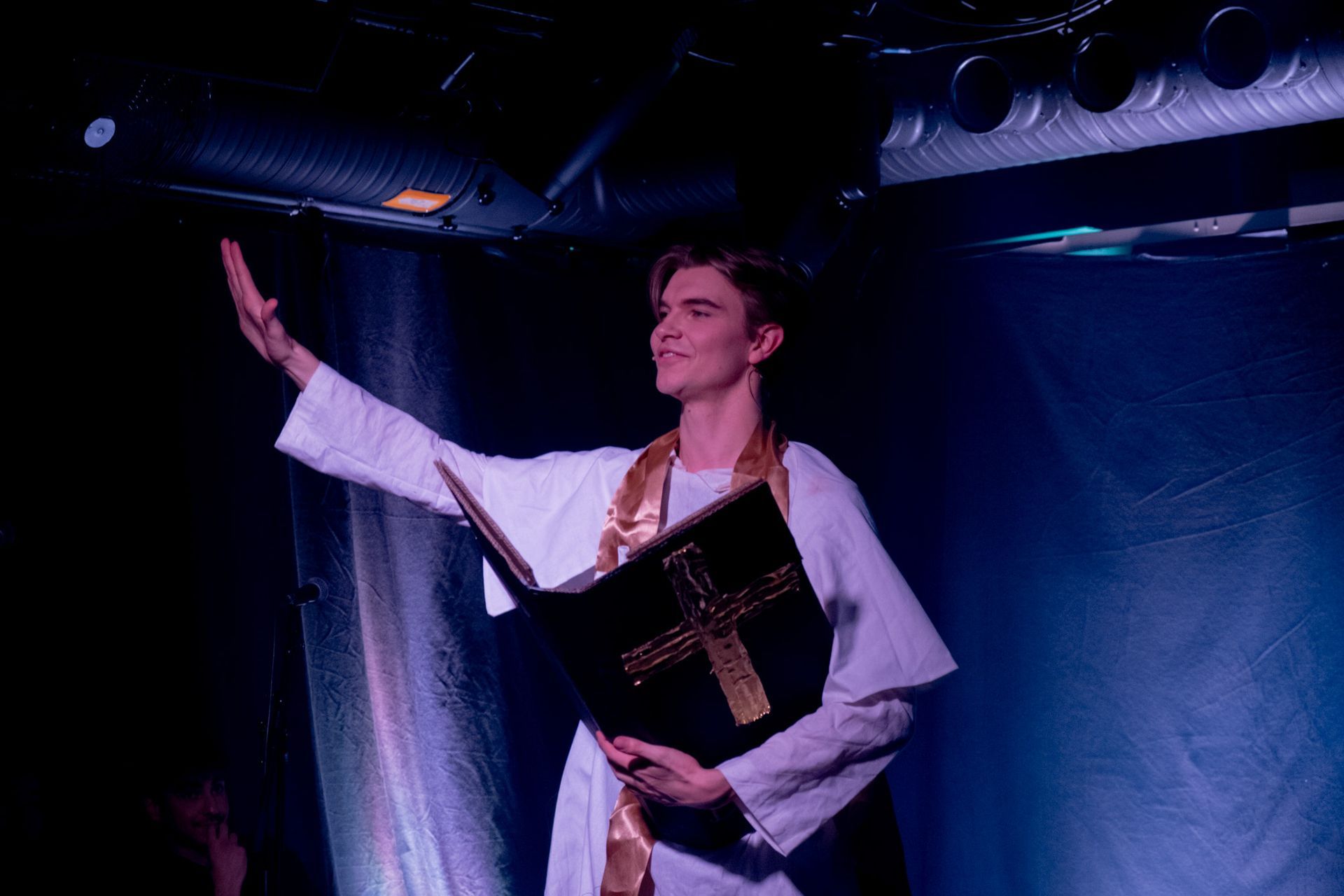 Skuespillerne er tidlig ute med å sette listen, energinivået og ikke minst temaet for kvelden, der det viser seg at det er grensen mellom sannhet og løgn som skal utforskes. Publikum blir umiddelbart trukket inn, og gjennom hele første akt kom jeg til å glemme at jeg befant meg i en litt klaustrofobisk Straffbar hvor sketsjene løftet musikken frem, og musikken løftet sketsjene frem.