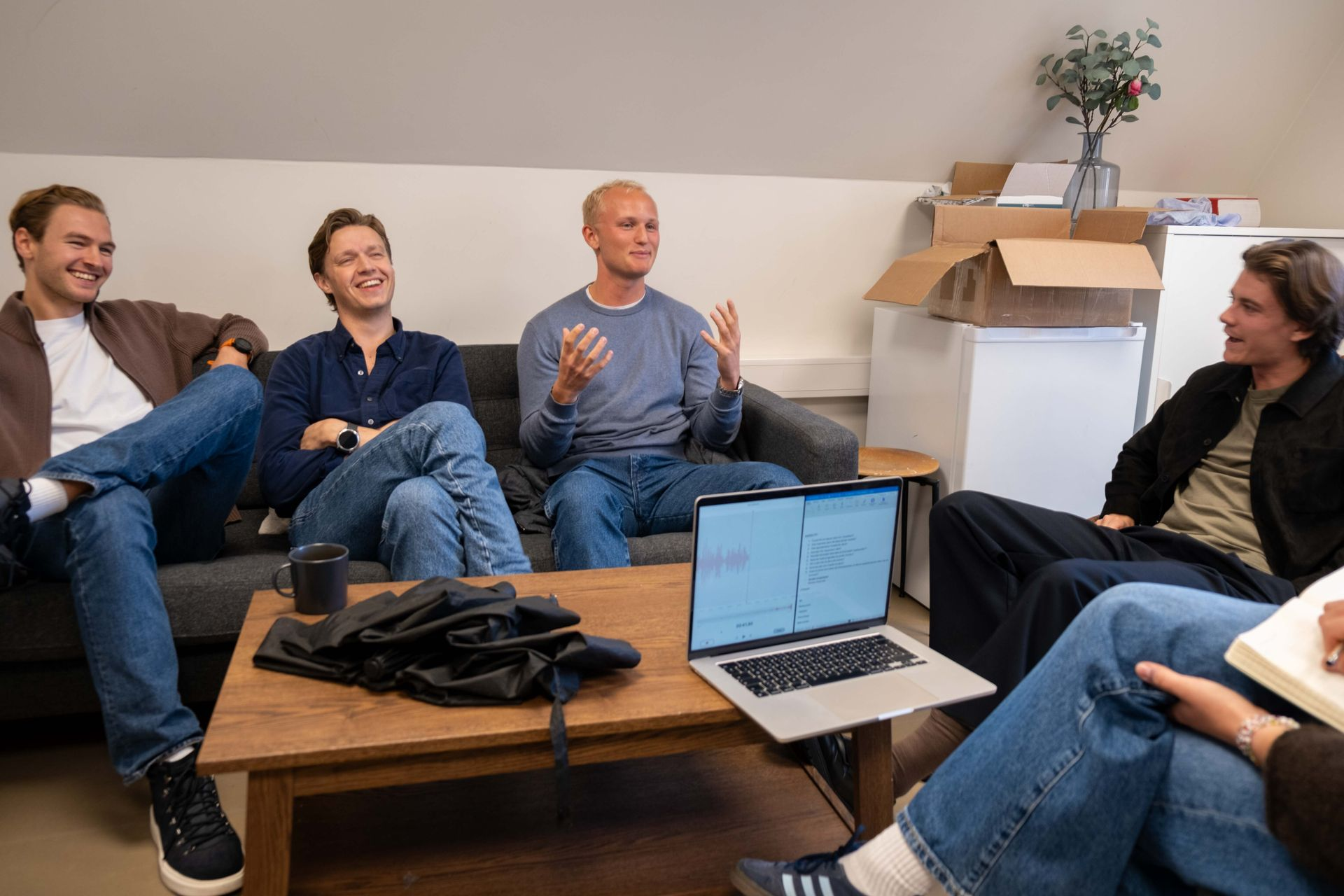 Fire sjarmerende gutter kommer meg i møte opp trappen til Portnerboligen. Midt i eksamenslesingen til strafferett har bandmedlemmene i Samma Det tatt seg tid til en prat om livet som fulltidsstudenter og deltidsrockestjerner. Latteren sitter løst, og energien er like avslappet som bandnavnet tilsier.